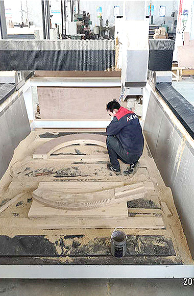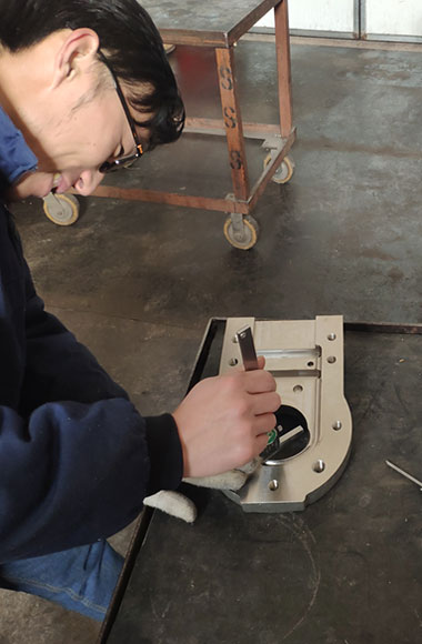 PROCESS FLOW基となる型(木型)に砂を詰め、型を抜き取ることで砂型を作る業務です。重量のかかる吊上げ作業等には機械を用い、それ以外の細かな作業は手で行います。枠内にきっちり砂を詰める作業は、砂が多くても少なくても駄目で、枠のツラに合うようにぴったりと詰めるのが目標です。 「中子」という鋳造製品の中空部分を作る仕事の場合は、さらにパズルや積み木ブロックのように型を組み合わせていく工程があり、基準となるポイントにピッタリ合わせることができなければ、不良品につながる確率が上がってしまいます。毎回違う形状のものづくりを行うことも多いため、その都度知恵と感覚を磨き、製品づくりに対応していくことになります。
